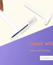 Razor putih polos dengan dua mata pisau ganda Panjang 9.5 cm x Lebar 4 cm tebal 2cm Berat per pcs 3.5 gr Mmata pisau tajam, dynamic model, warna putih Minimal order 500pcs.